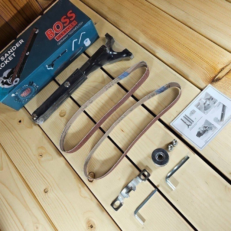 💬 تبدیل مینی فرز به سنباده نواری باس 1️⃣ امکان استفاده روی انواع مینی فرز 2️⃣ دارای دو عدد سنباده نواری سایز ریز و درشت 3️⃣ امکان استفاده از سنباده های رولی بازار 4️⃣ مونتاژ و استفاده آسان